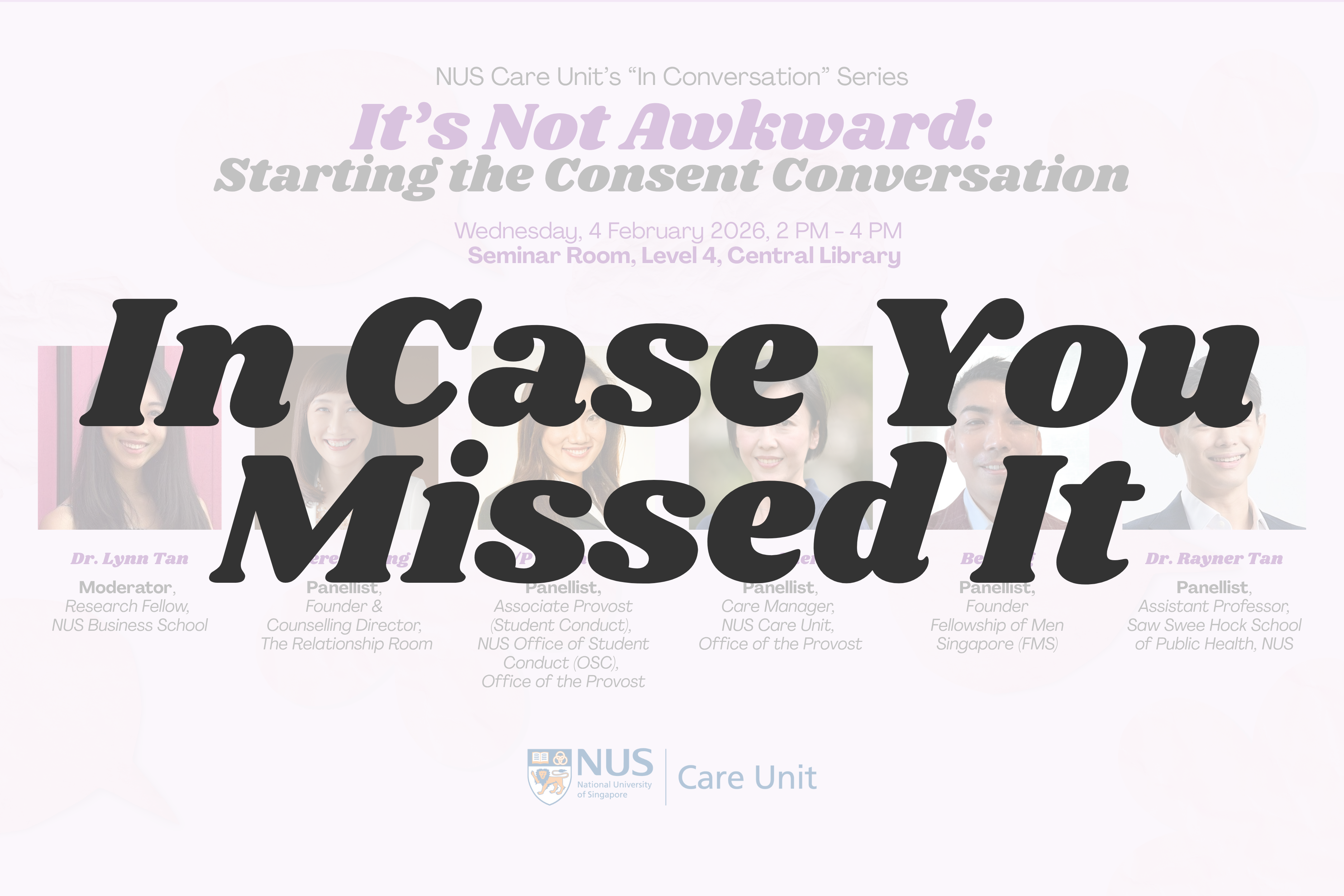 In the fourth episode, panelists from NCU, UHC, Yale-NUS, and AWARE shed light on the ways in which we can approach and navigate conversations regarding sexual health.